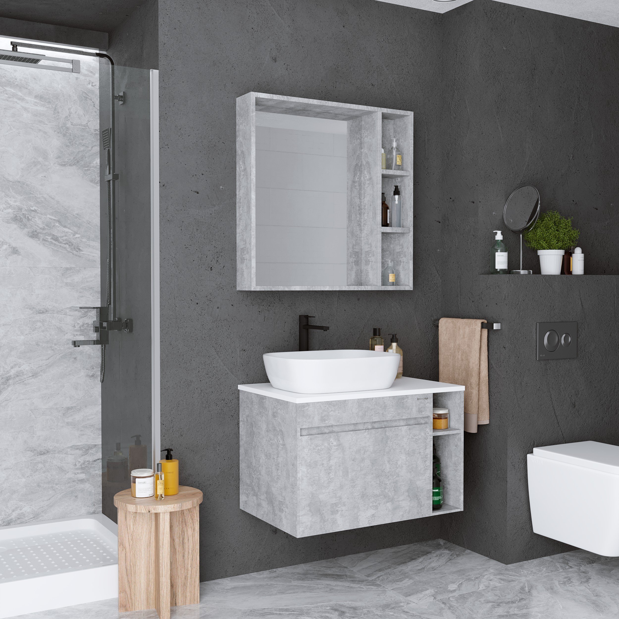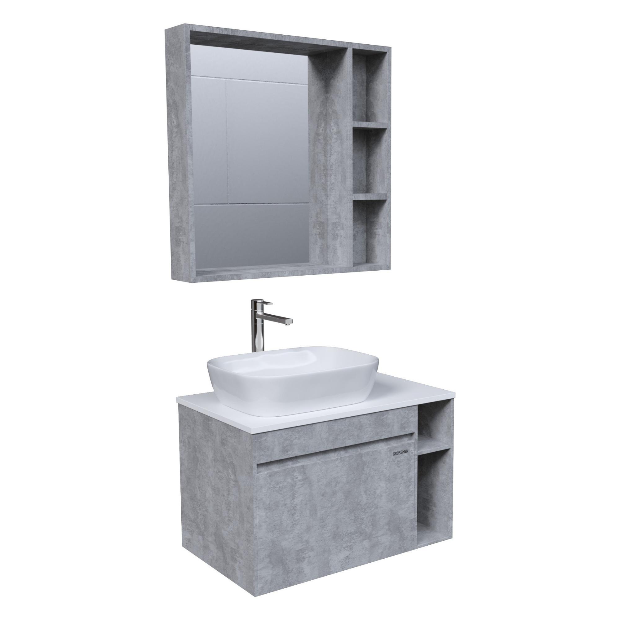 Тумба под раковину в ванной подвесная Grossman ФАЛЬКОН-80 см, бетон