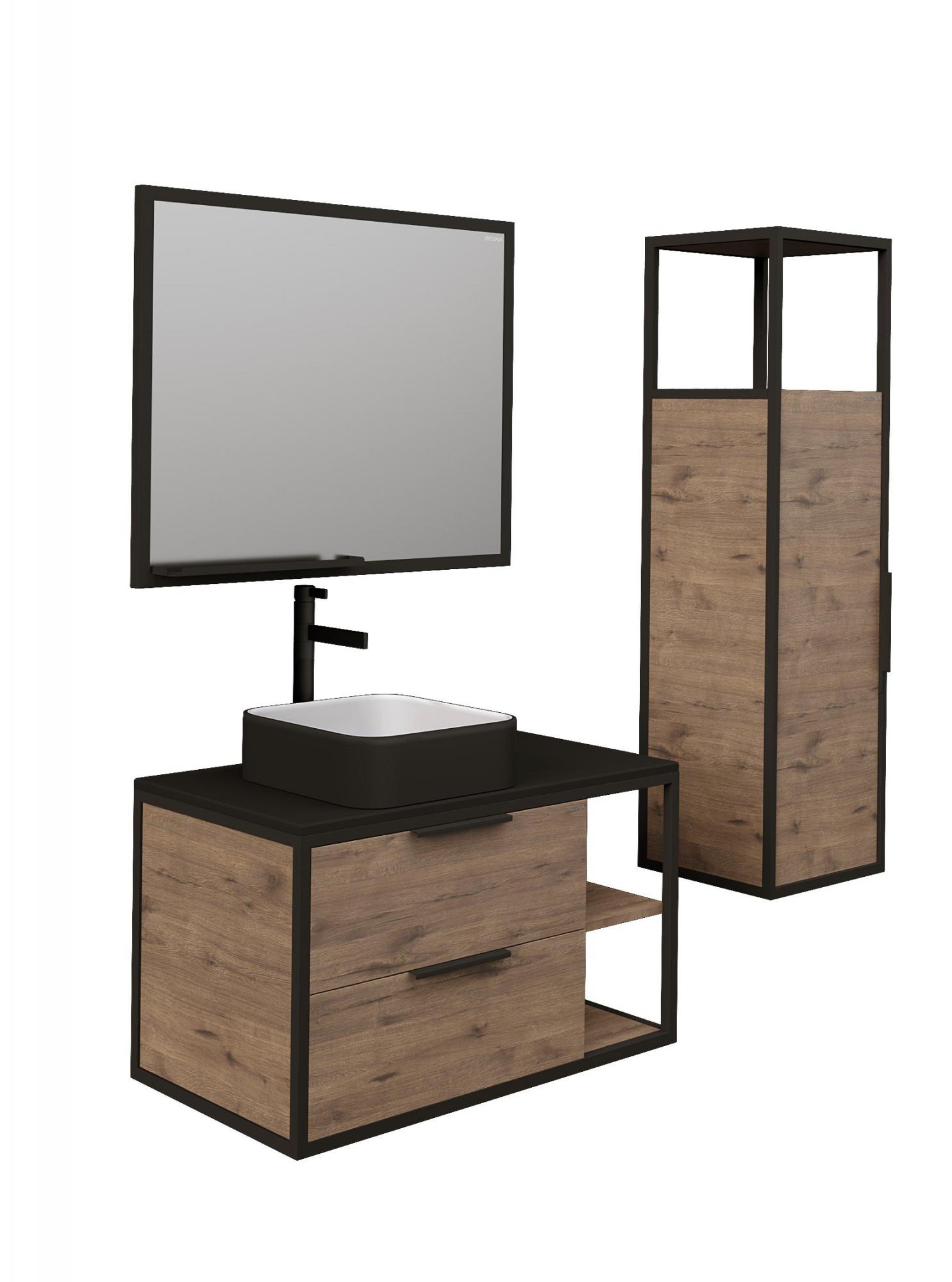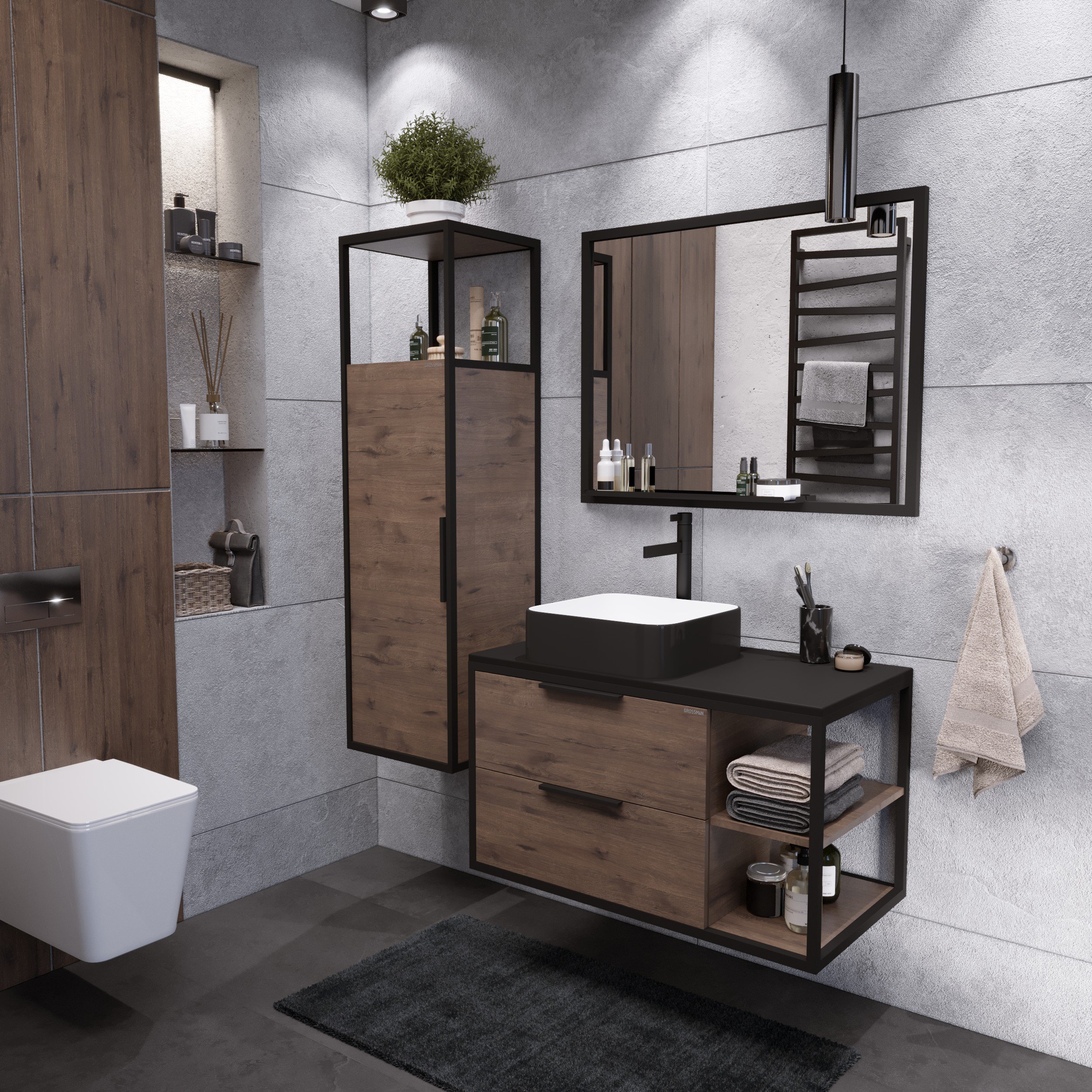 Тумба подвесная "ЛОФТ-90 см", с 2-я ящ. веллингтон/металл черный
