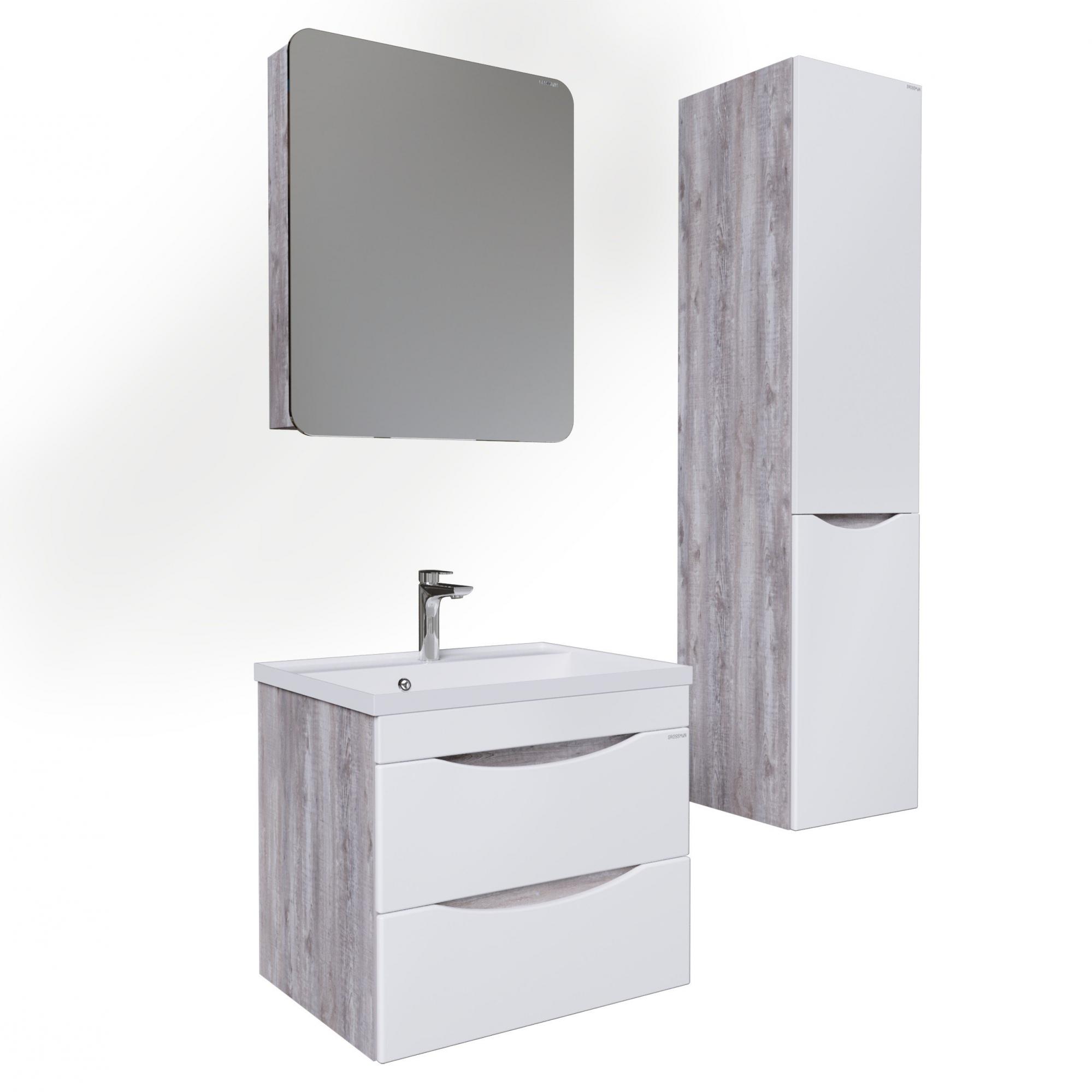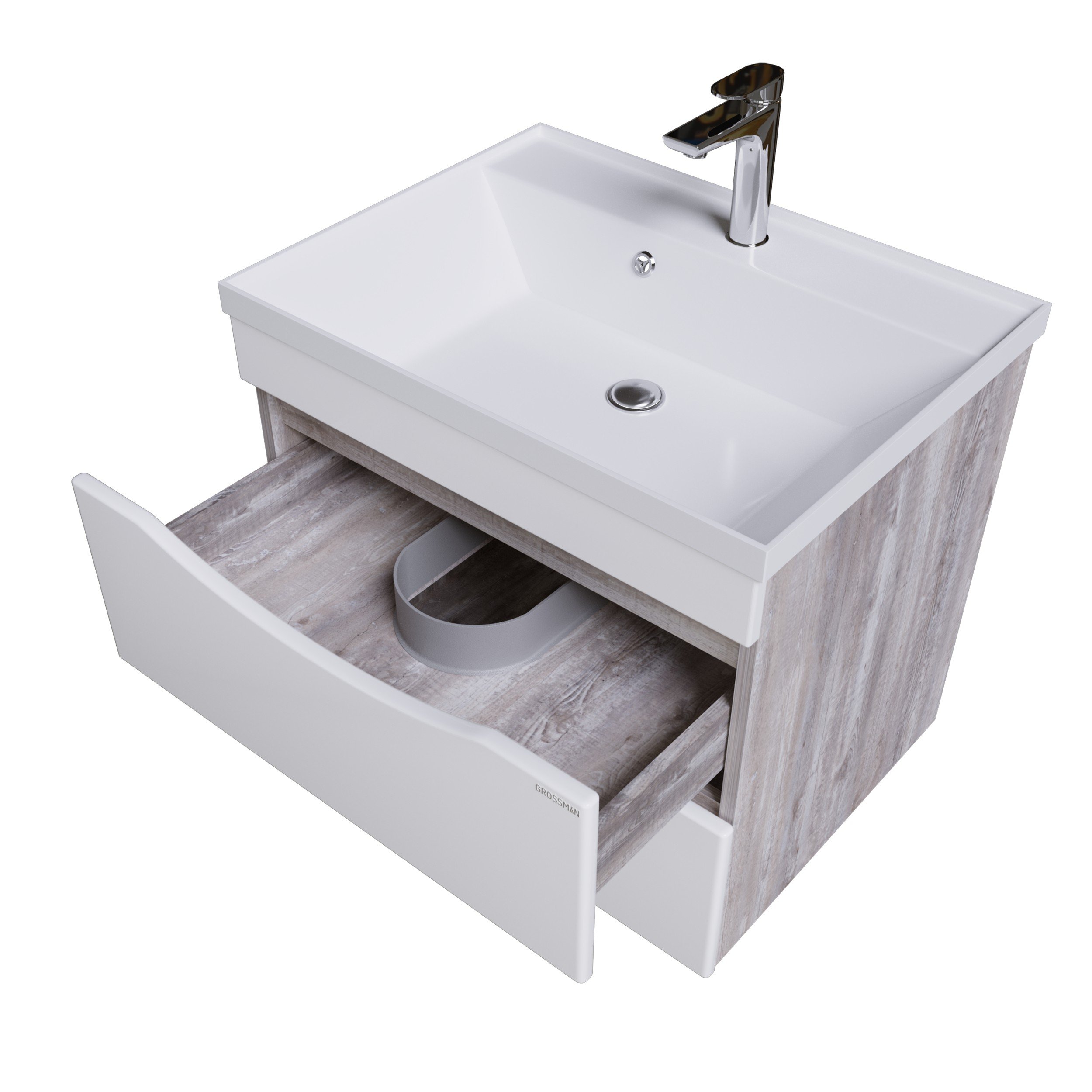 Тумба под раковину в ванной подвесная Grossman ТАЛИС-60 см, бетон пайн/белый