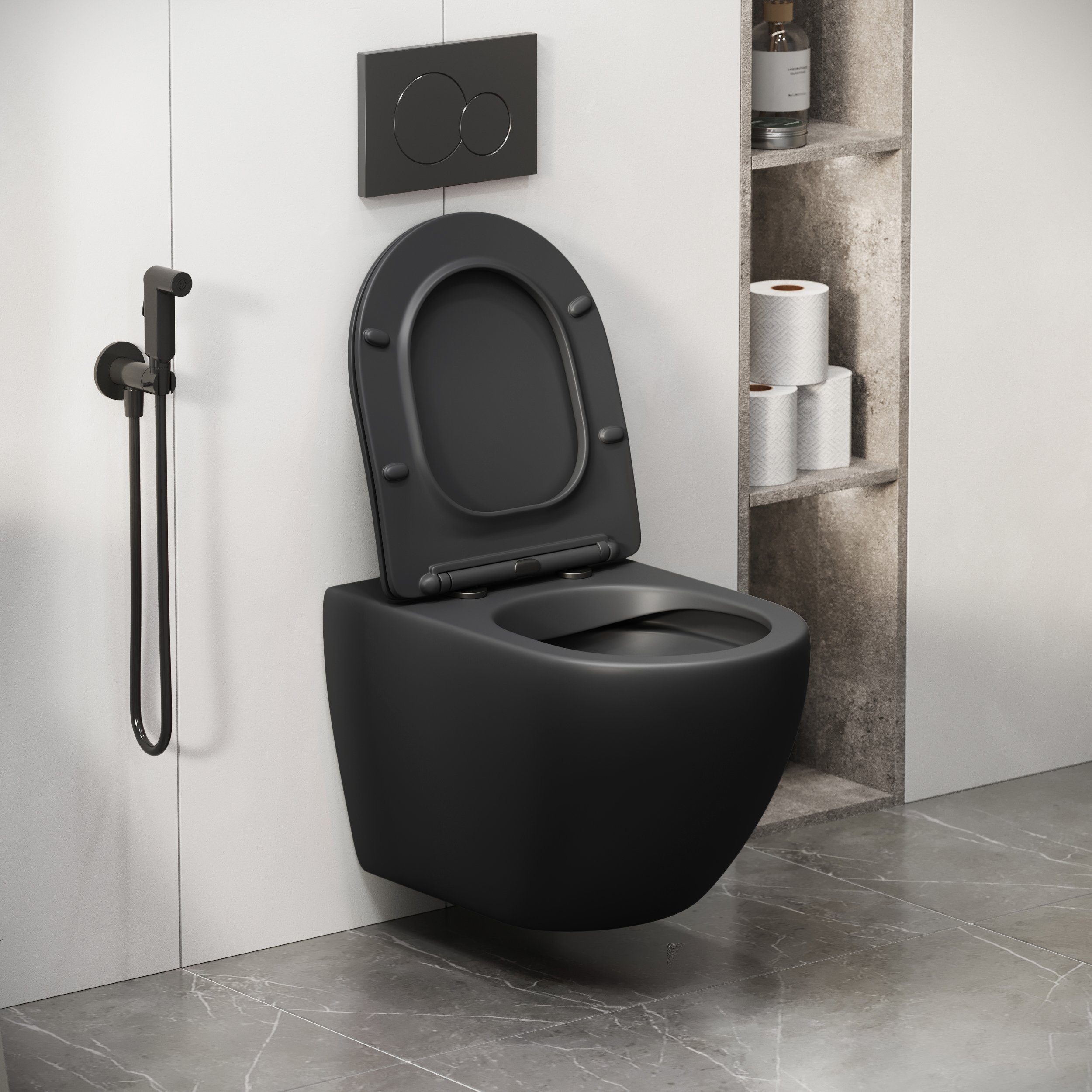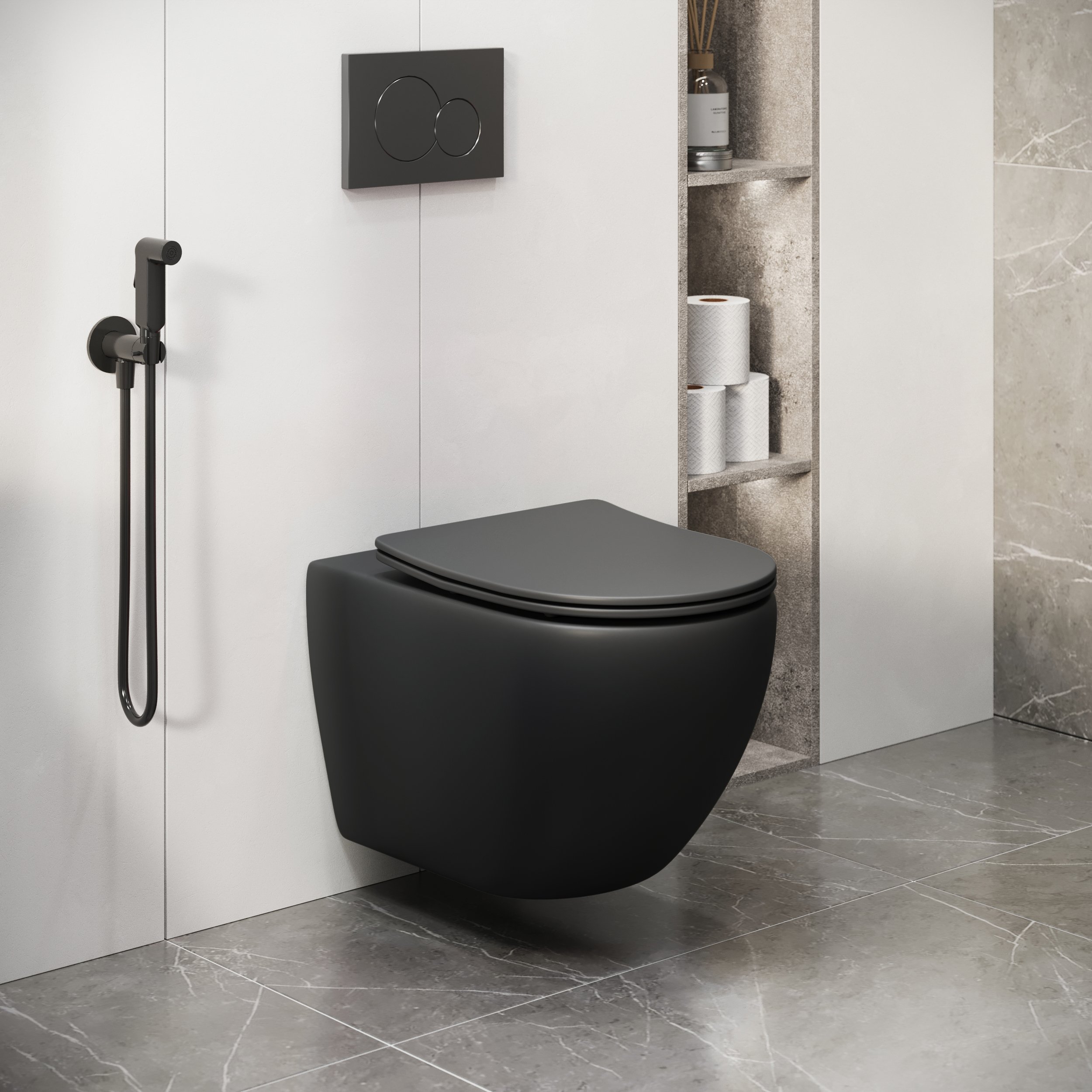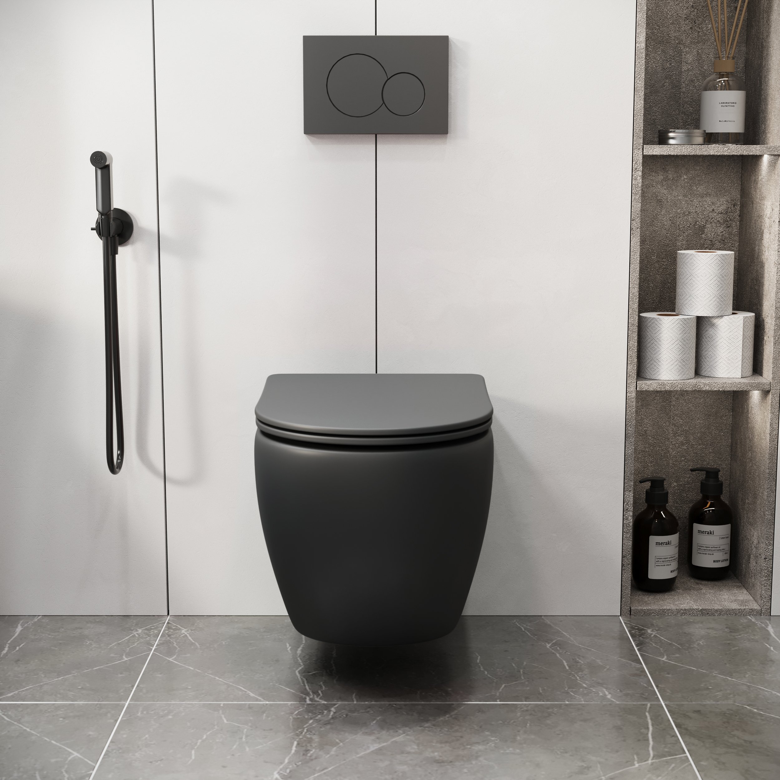 Унитаз GR-4411BMSQ Color (550*365*395) ЧЕРНЫЙ МАТОВЫЙ подвесной БЕЗОБОДКОВЫЙ