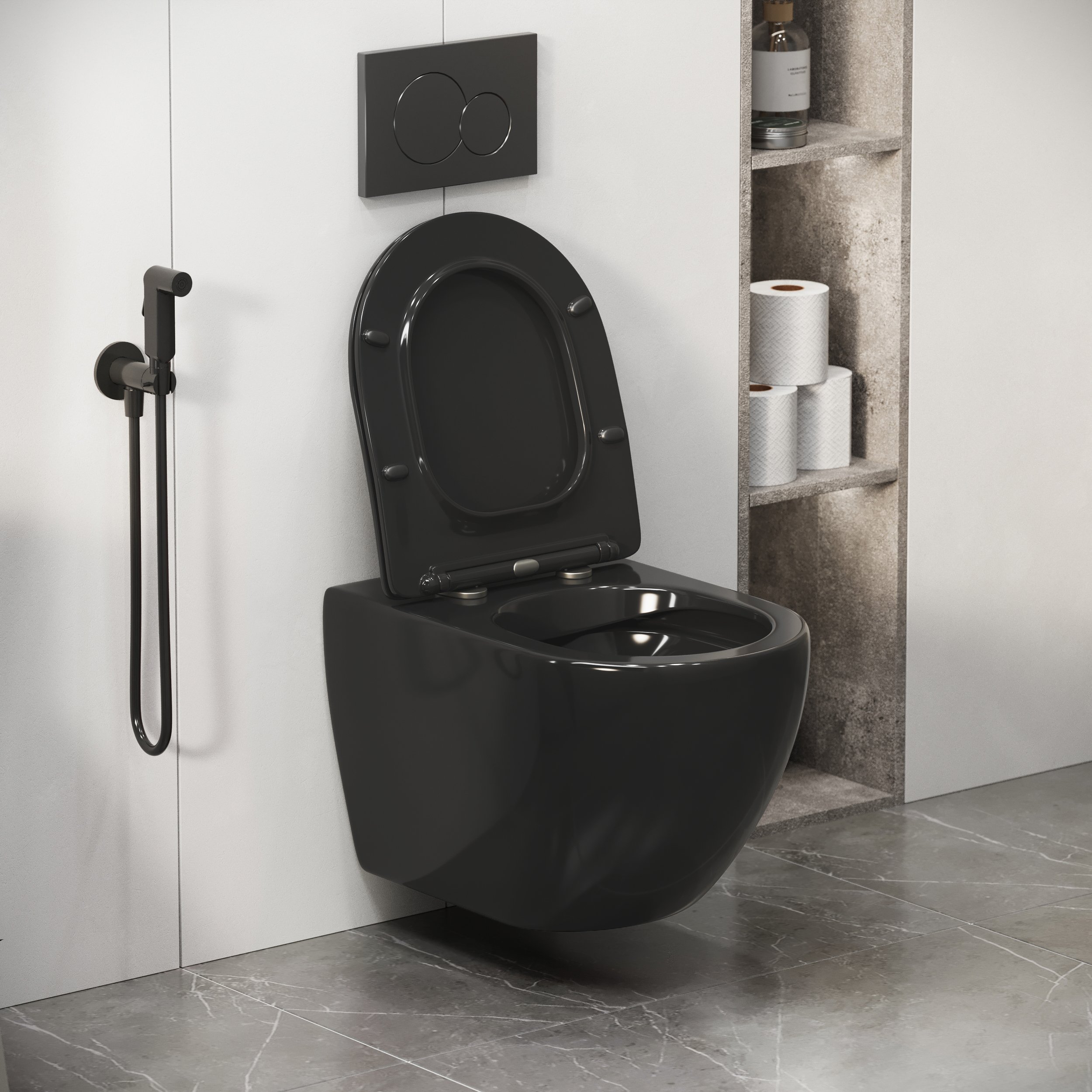 Унитаз GR-4411BS Color (560*360*350) ЧЕРНЫЙ подвесной БЕЗОБОДКОВЫЙ  с тонкой крышкой