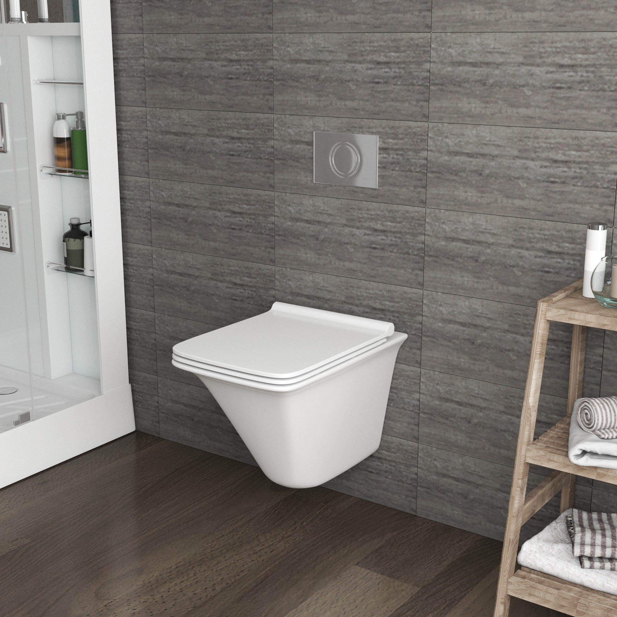 Унитаз GR-4413S (510*355*370) подвесной БЕЗОБОДКОВЫЙ с тонкой крышкой, 1 место