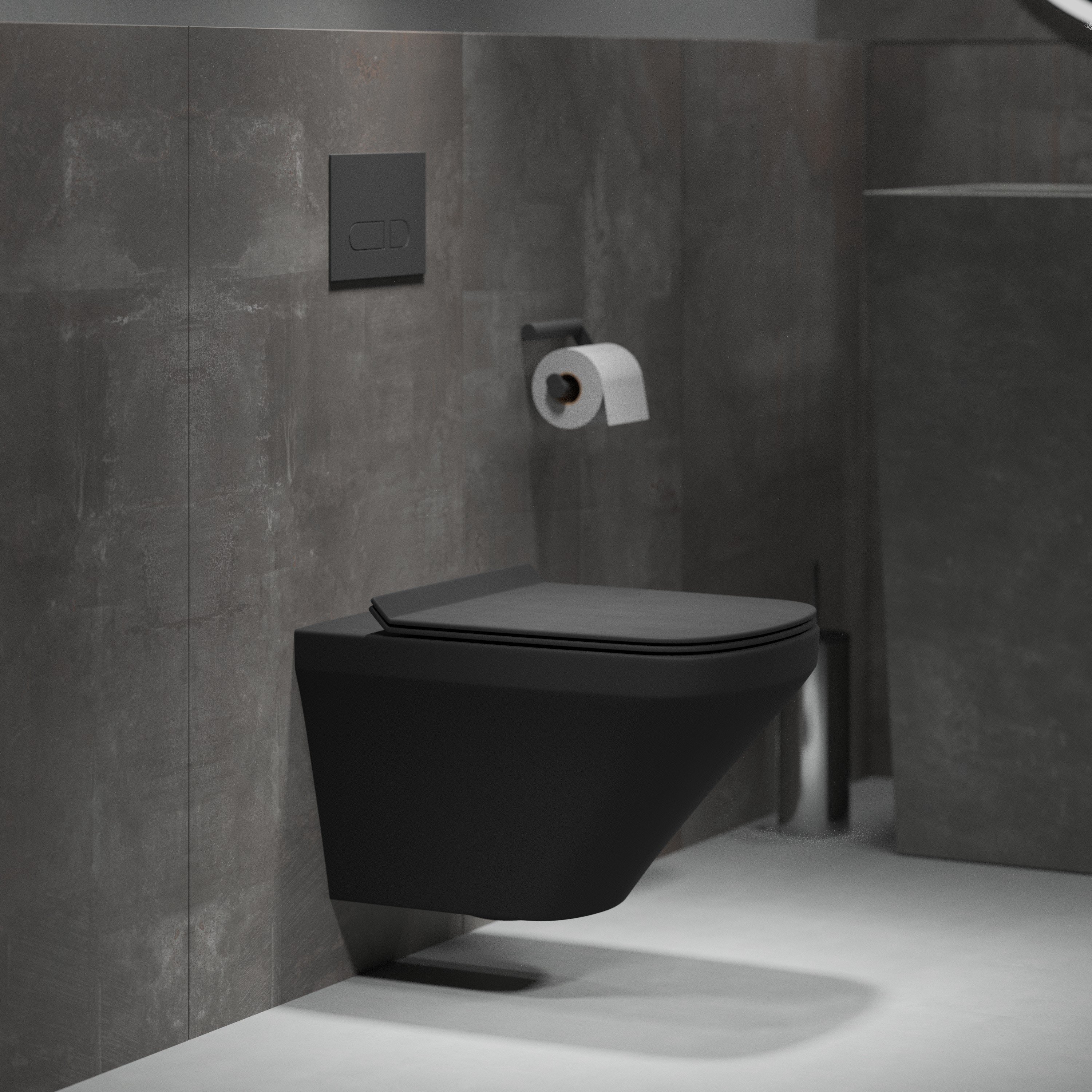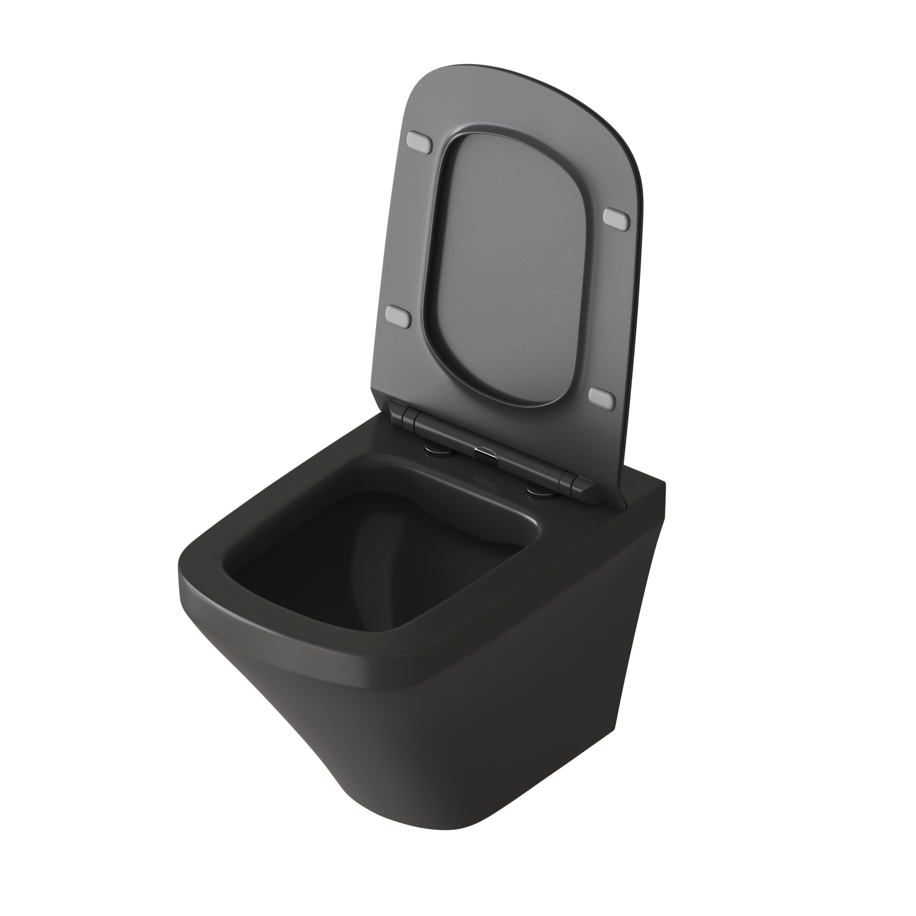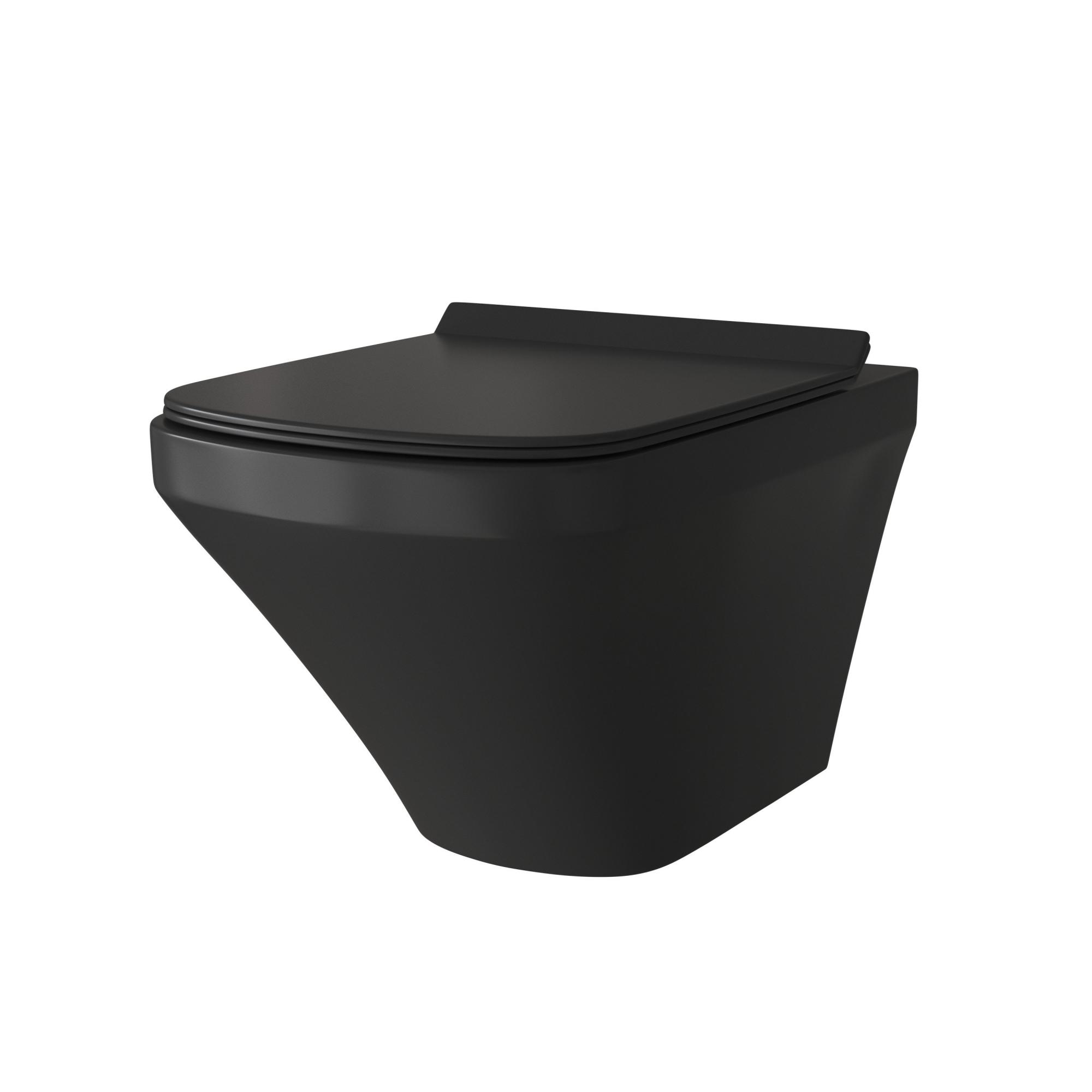Унитаз GR-4440BMS (540*370*365) ЧЕРНЫЙ МАТОВЫЙ подвесной БЕЗОБОДКОВЫЙ с тонкой крышкой, 1 место