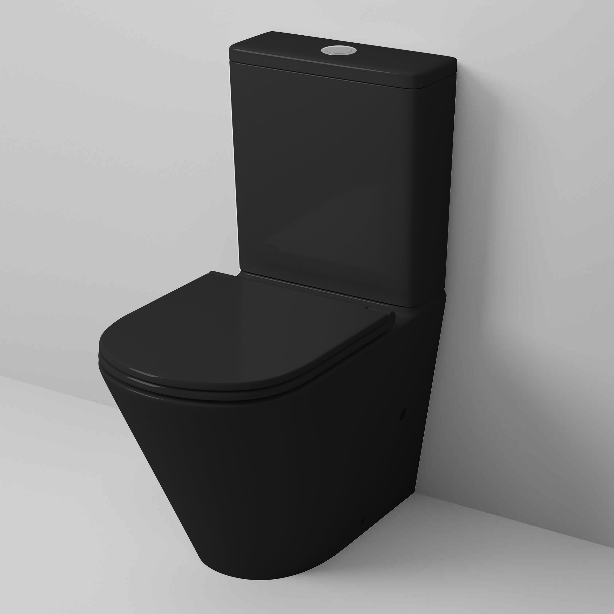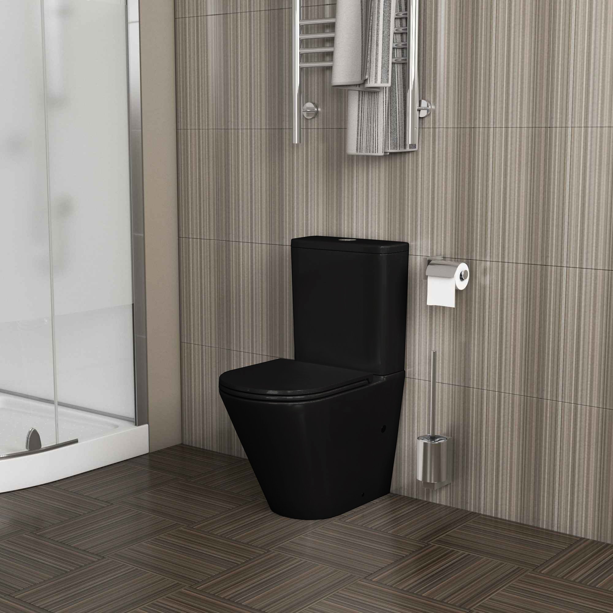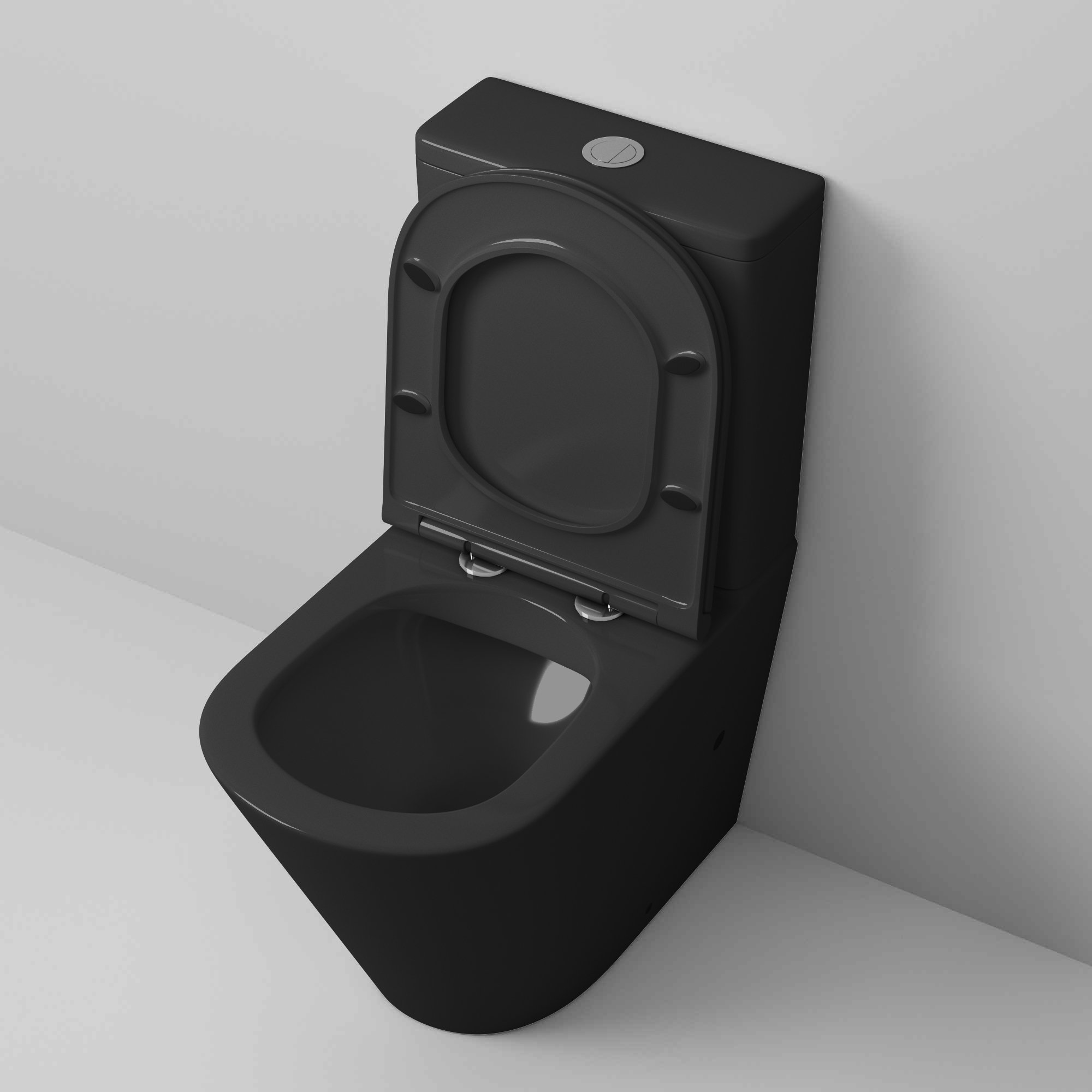 Унитаз GR-4450BMS (605*380*825) ЧЕРНЫЙ МАТОВЫЙ напольный БЕЗОБОДКОВЫЙ с тонкой крышкой, 2 места