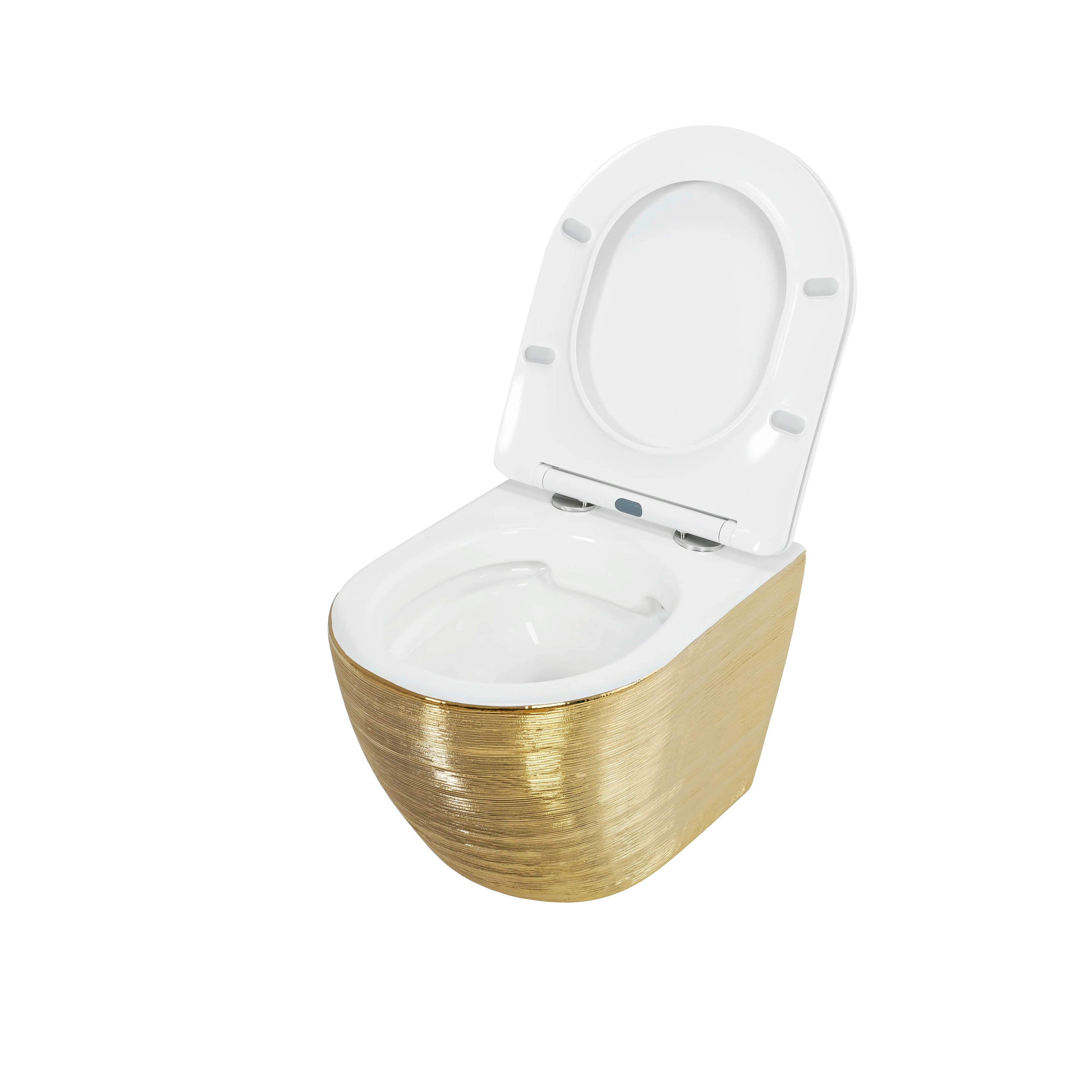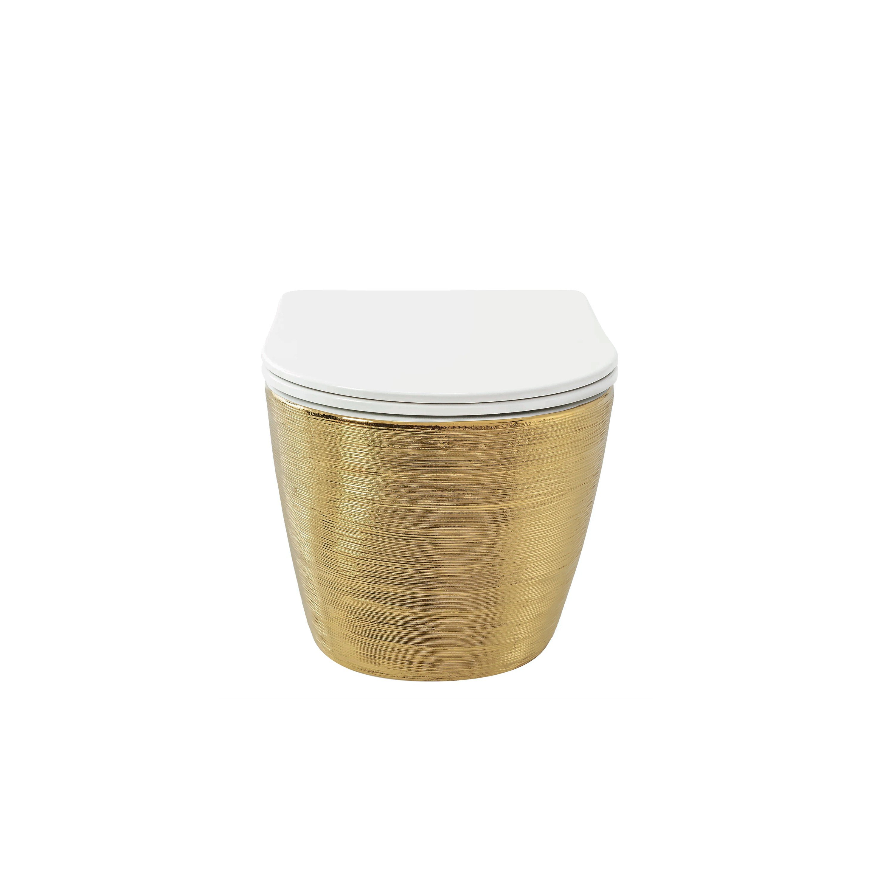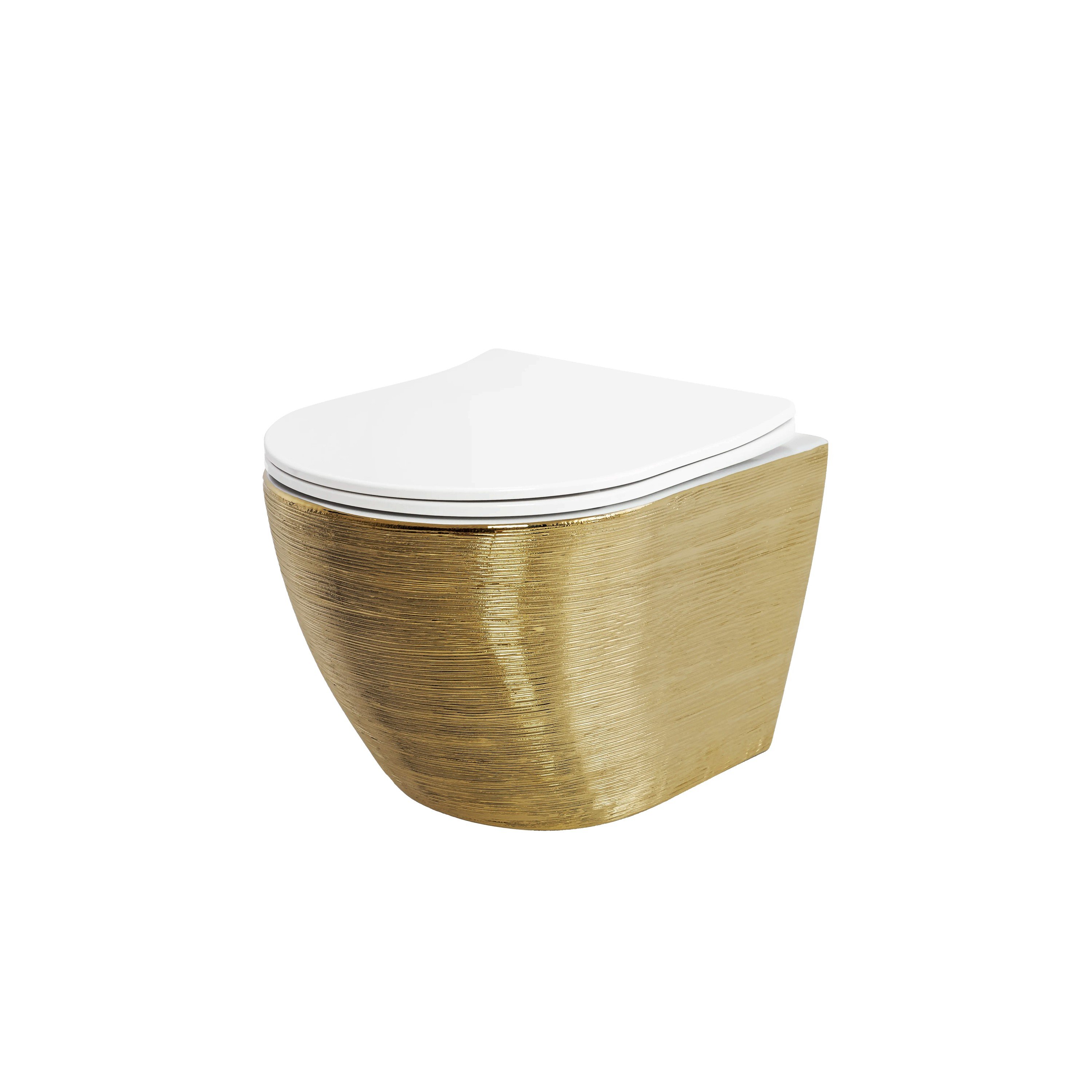 Унитаз GR-4455GWS (480*365*370) ЗОЛОТОЙ внутри БЕЛЫЙ подвесной БЕЗОБОДКОВЫЙ с тонкой крышкой
