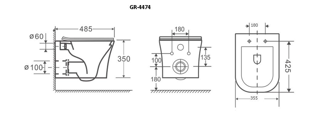 Унитаз GR-4474S Style (485*355*350) подвесной БЕЗОБОДКОВЫЙ с тонкой крышкой