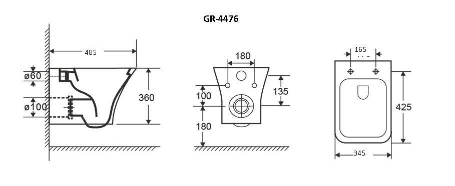 —Унитаз подвесной Grossman GR-4476S Galaxy (485х345х360) горизонтальный выпуск