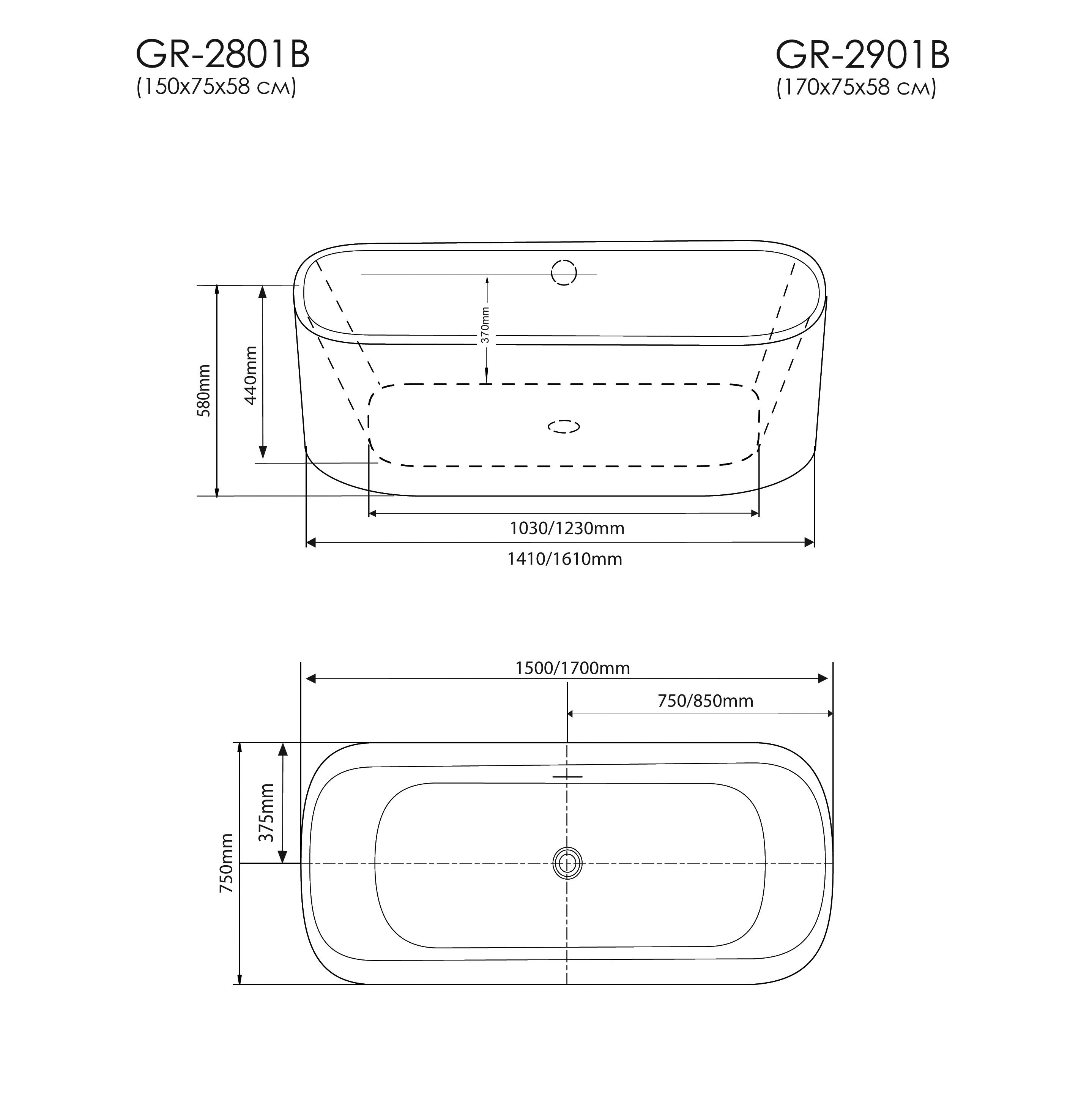 Ванна отдельностоящая GR-2901 Black (170x75x58) GROSSMAN 1 место